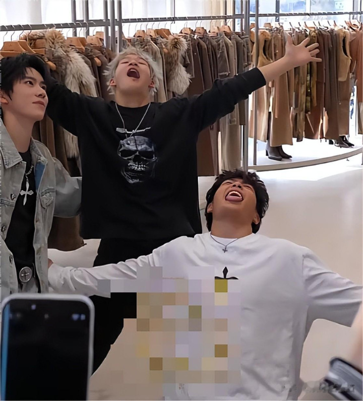 只有旁边的肖添仁看着还算正常,长得很帅,穿着牛仔外套。